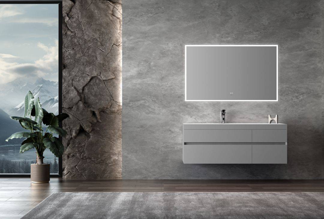 木里浴室柜臺面采用不同以往的啞光質地,做到保留亞克力材質優勢的同時,升級了觸感體驗,達到1+1>2的效果;其次,臺盆采用亞克力無縫一體工藝,流暢不藏垢,進一步改善日常清潔體驗。